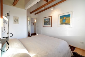 - stylish single bedroom#2: a double bed (not twins), a window, 2 bedside tables, clothes rack, original Terrazzo Veneziano marble flooring