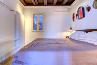 - stylish single bedroom#1: a double bed (not twins), 2 windows with view on Campo Ruga, 2 bedside tables, chest of drawers, wardrobe, original Terrazzo Veneziano marble flooring