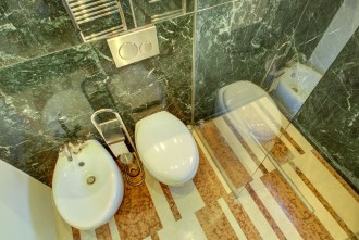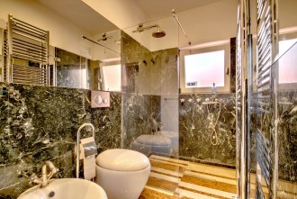 - marble bathroom: washbasin with mirror, a window, shower, bidet, WC, marble floors, washing machine, dryer
