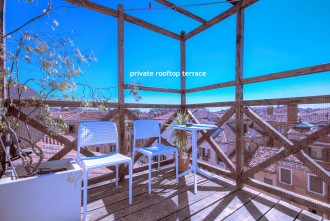 stylish apartment for groups recently-restored, spacious super apartment with 2 autonomous units, 5 double beds, 3 baths, air-cond, Wifi. Private rooftop terrace for 4 people max