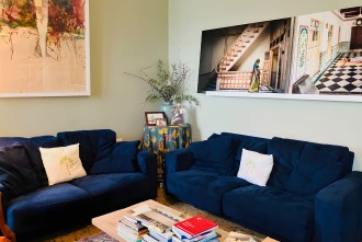 - living room, sunny and large: 2 windows with stunning panoramic view, 2 sofas